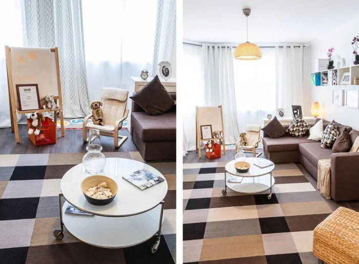 Тут всё упирается в логику. Для кабинета или прихожей нужна одна история, для спальни или детской — совершенно другая. Например, практичная экокожа в спальне может казаться холодной, а нежный велюр в гостиной с детьми и питомцами — непрактичным.