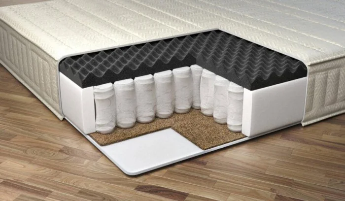Чтобы пружины не терлись об обивку, между ними кладут тонкую прокладку. Этот тип наполнителя выдерживает солидные нагрузки и редко деформируется, что объясняет его популярность в бюджетных и средних линейках.