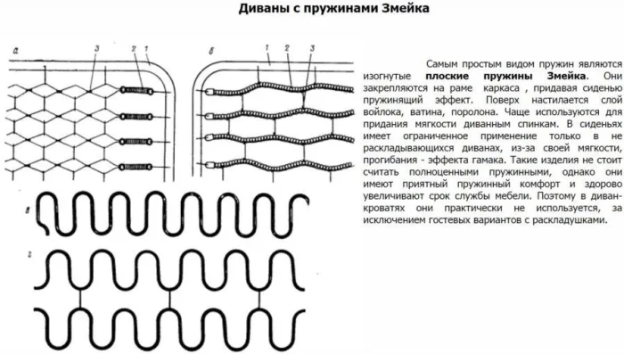 Архаичная система, где пружины крепятся к каркасу из ДВП, а мягкого наполнителя — минимум. При активном использовании такой диван начинает скрипеть и проваливаться уже через год. Серьёзно, в наше время есть варианты получше.