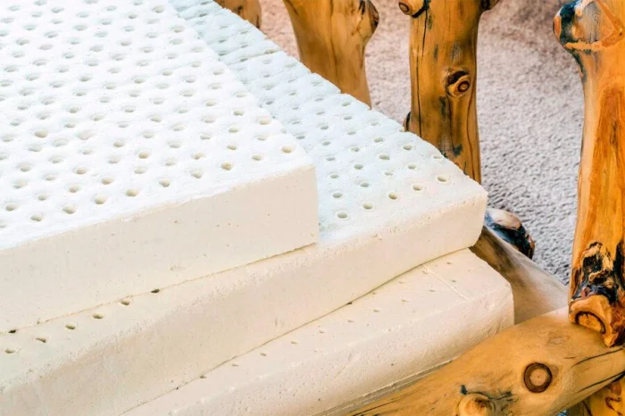 Самый распространённый искусственный наполнитель. Его либо заливают в форму, либо режут из блоков. Срок службы — 8-10 лет, гипоаллергенен, упруг. Но боится прямых солнечных лучей, от которых начинает крошиться.