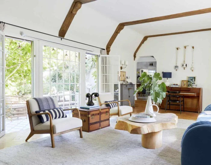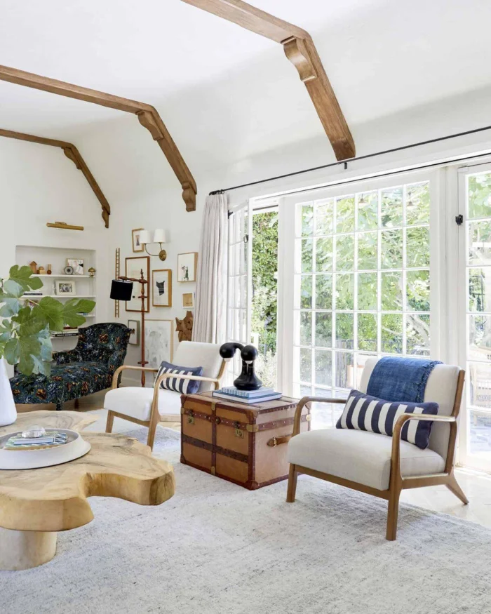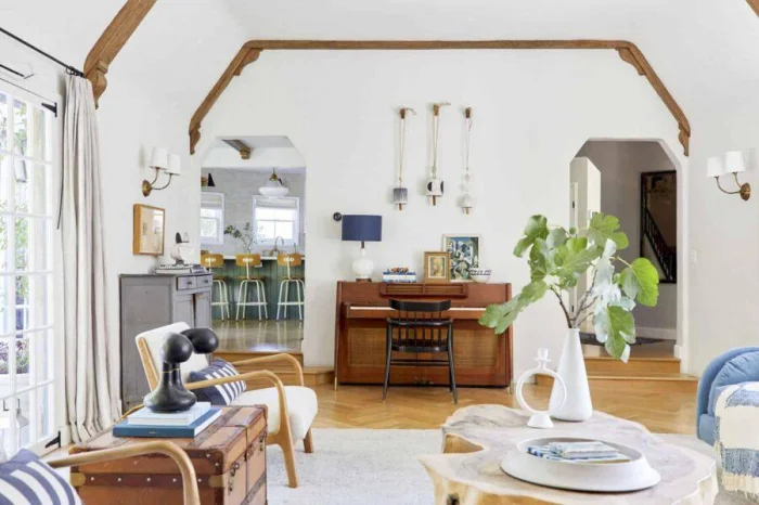 Дизайнер Крис Манало призывает вступить в новое десятилетие с чистого, свежего пространства. Основа — спокойные нюдовые тона, которые дарят чувство свободы и чистоты. Идеально сочетать их с теплыми «земляными» акцентами на фоне глубокого синего. Получается очень свежо и умиротворяюще.