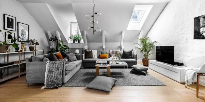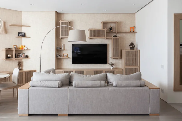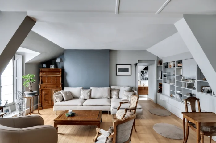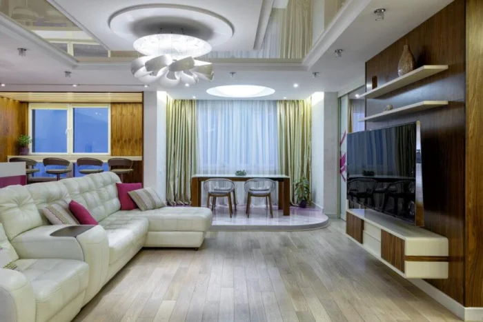 Помните, как раньше было модно делить комнату громоздкими стеллажами? В 2023-м от этой идеи лучше отказаться. Зачем красть драгоценные сантиметры? Вместо этого дизайнеры предлагают играть с уровнями и текстурами. Например, уложить два разных покрытия пола. Это и визуально разграничит зоны, и добавит тактильного комфорта под ногами. Уютно и практично.