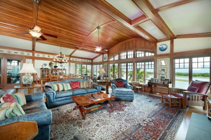 Классическая деревянная отделка отлично дружит с современными линиями мебели. Выбирайте натуральные материалы — дерево, камень, лен. И неважно, живете вы в загородном доме или в типовой панельке: создать атмосферу деревенского тепла можно где угодно.