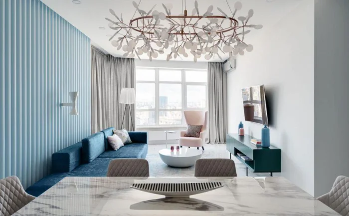 Прощай, безопасный бежевый! В прошлом году царствовали нейтральные тона, а сейчас настало время смелых решений. Возьмите на вооружение небесно-голубую палитру. Заметили, как много стало обоев и красок глубоких синих оттенков? Это неспроста. Такой цвет не просто оживляет пространство — психологи уверяют, что он снимает стресс и даже улучшает микроклимат в семье. Сила цвета — это ведь почти магия.
