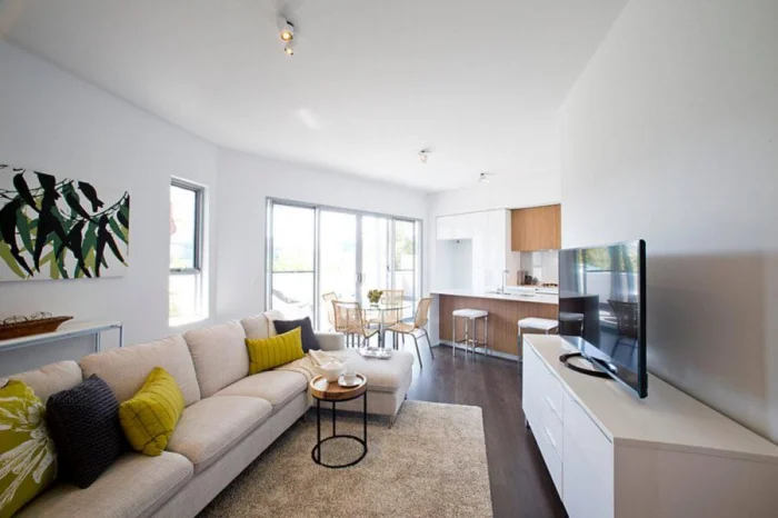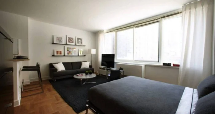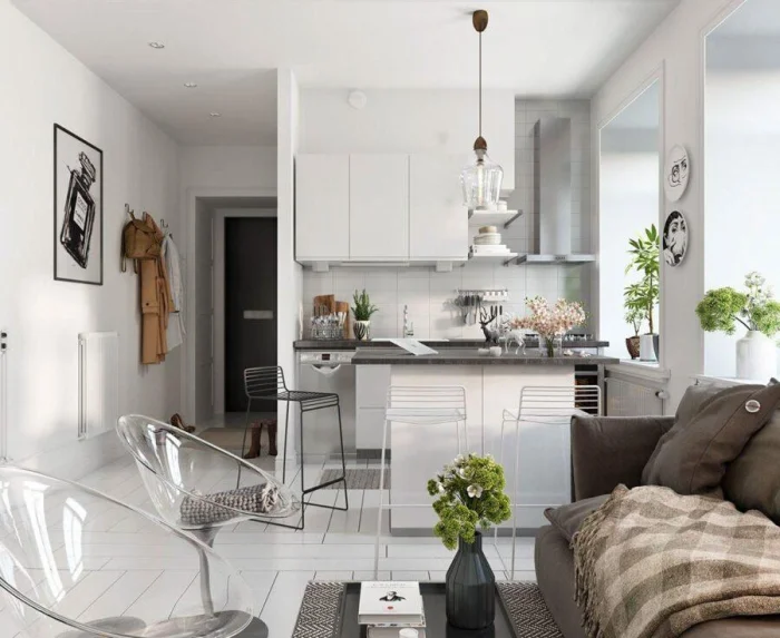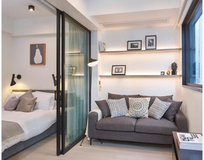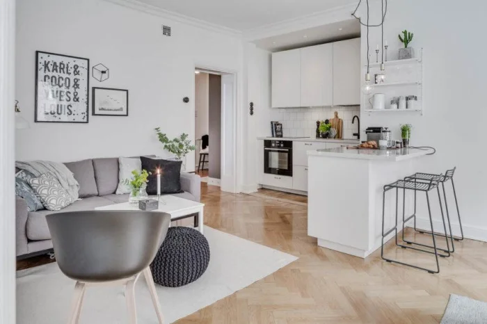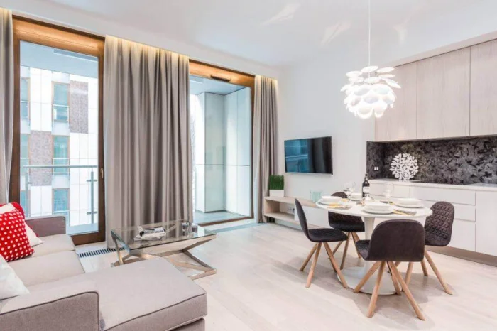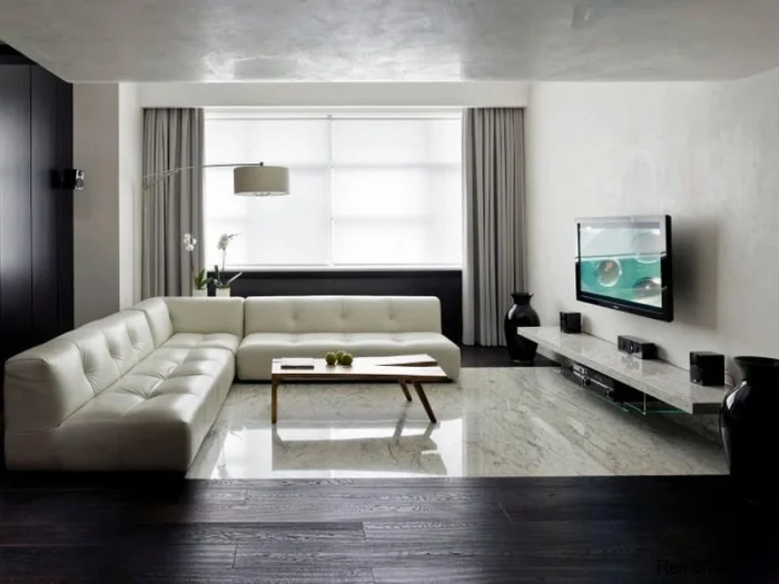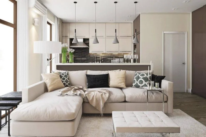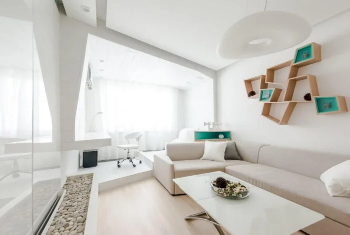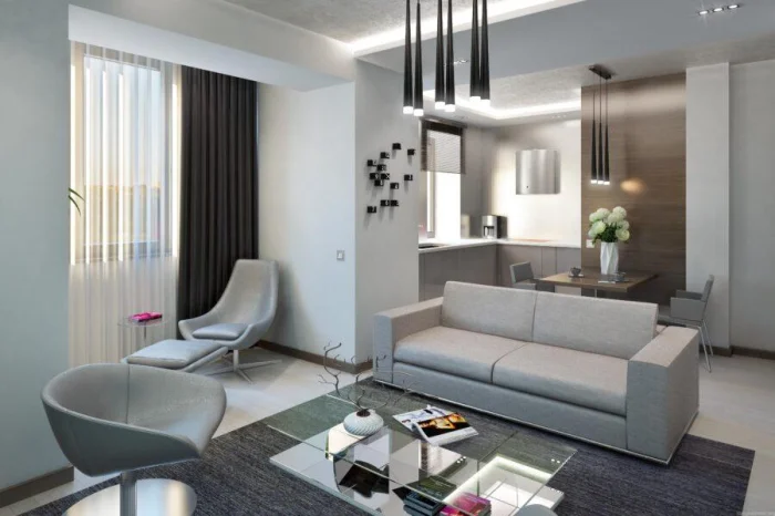 Цель — создать ощущение воздуха и простора. В этом помогают светлые стены, лаконичная мебель, скрытые системы хранения.