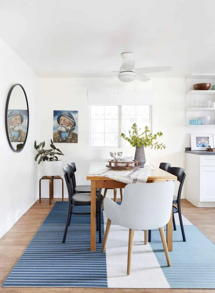 Но это не значит, что цвет запрещён! Акценты в синих, зелёных, терракотовых, глубоких голубых тонах — это микротренды, которые добавляют интерьеру характер.