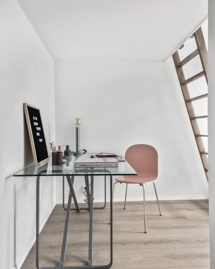 Организовать рабочее место можно даже в самой маленькой квартире. Найдите угол, поставьте компактный стол и удобный стул. Главное — хорошее освещение и возможность уединения.