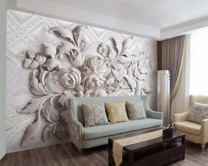 Такая стена – прирожденная солистка. Она сразу станет главным акцентом в гостиной. И это должен быть ЕДИНСТВЕННЫЙ сильный акцент в комнате. Если вокруг уже есть яркая мебель или пёстрый ковёр, объёмные обои создадут визуальную драку, а не гармонию. Всегда сначала примеряйте идею, хоть в простом редакторе на телефоне.