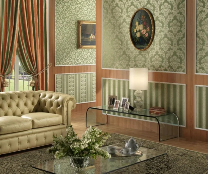 Возвращение изящной старины! Сложные вензеля, витиеватые цветочные орнаменты, строгие дамасские узоры – всё это снова на пике. Такие обои придают интерьеру аристократизм и глубину, как дорогое вино.