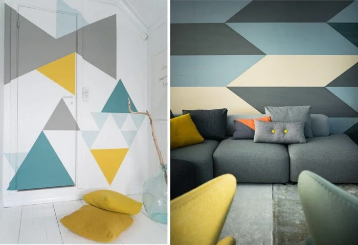 Модный тренд – не клеить обои, а рисовать геометрию прямо на стене. Это ваш шанс стать художником-монументалистом для собственной квартиры. Вооружитесь малярным скотчем, краской и терпением. Результат, в который вложена душа, дарит особое чувство.