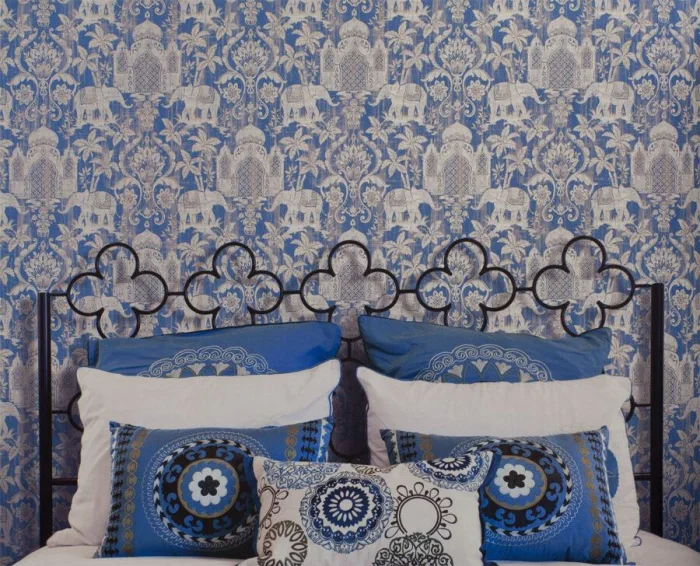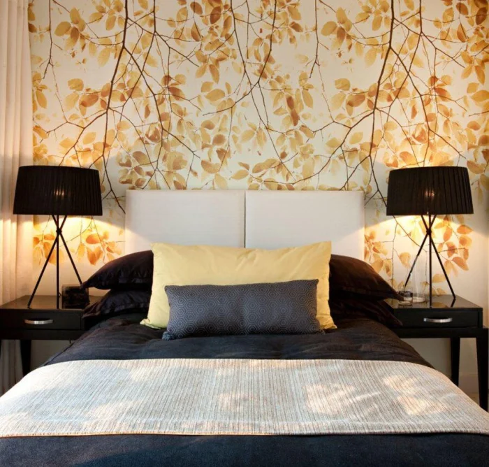 Попробуйте сыграть на контрасте: тёмный, благородный фон (цвета бутылочного стекла, шоколада, тёмного индиго) и светлый, кремовый узор. При вечернем свете лампады такая стена будет отбрасывать таинственные тени – не интерьер, а настроение.