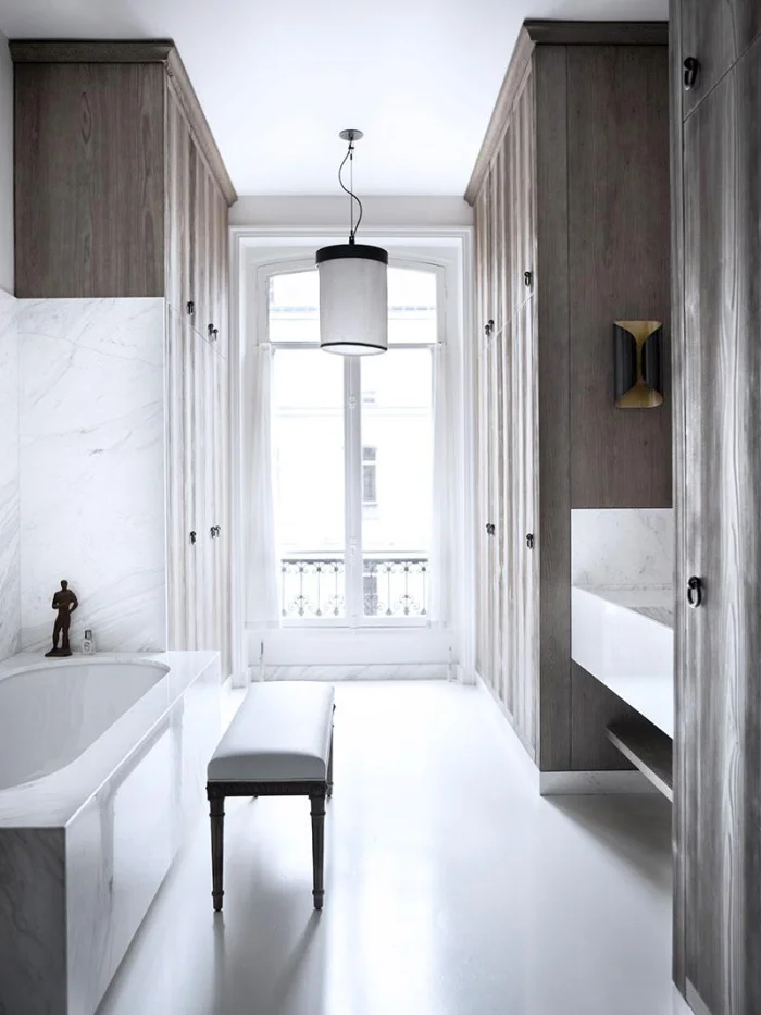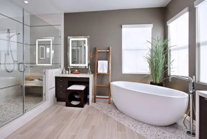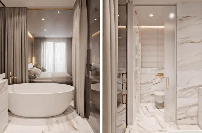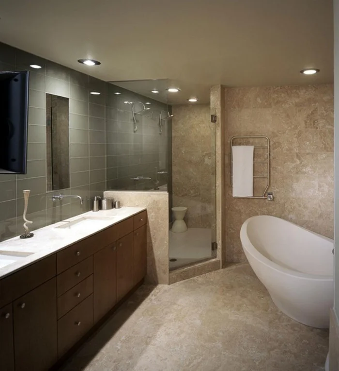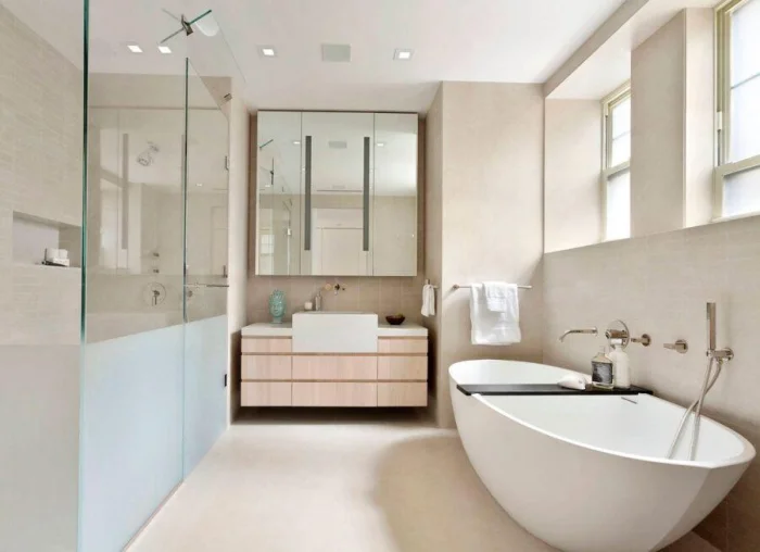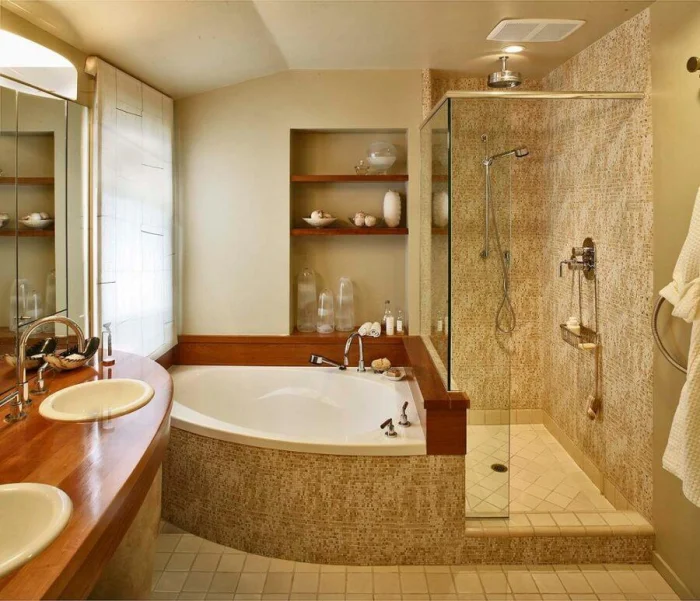 Идеальный сценарий для просторной ванной — иметь и душ для быстрых процедур, и ванну для долгого отдыха.
