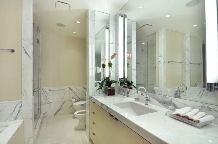 Представьте каменную столешницу или мраморную плитку в душевой зоне. В сочетании с умной техникой и продуманным светом это не просто ремонт, это создание атмосферы личного спа.