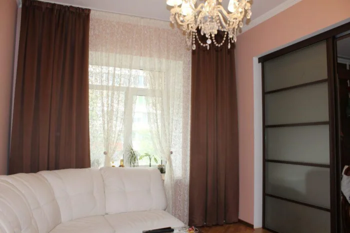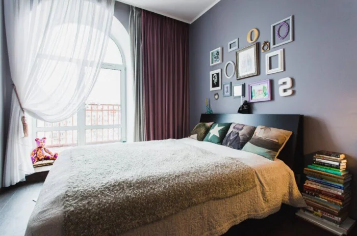В квартире-студии окна лучше оформлять в едином ключе, меняя лишь оттенки или фактуру ткани. А вот в отдельных комнатах можно дать волю фантазии. Но есть правило: чем сложнее и богаче оформление окна, тем проще должна быть мебель.