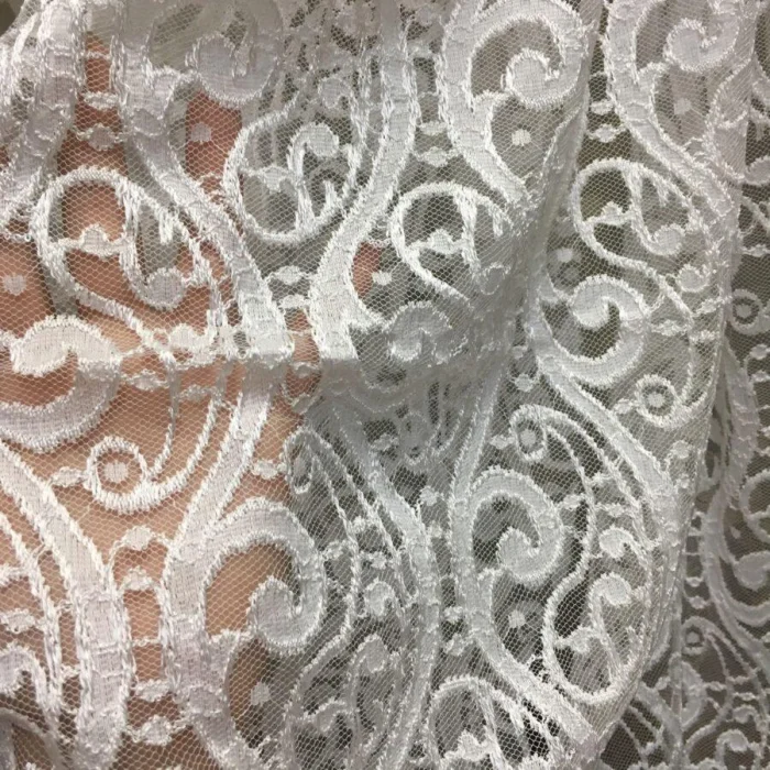 Ткань с рельефным, часто сложным узором. Выглядит дорого и солидно. Жаккард может быть матовым или с лёгким блеском, однотонным или с рисунком. Он прочен, долговечен и прекрасно комбинируется с другими видами тюля, например, с гладкой вуалью.