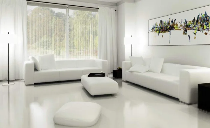 Для стиля минимализм выбирайте холодные, почти «техногенные» оттенки: светлый металлик, голубая дымка, чистый белый, лимонный, аметистовый.