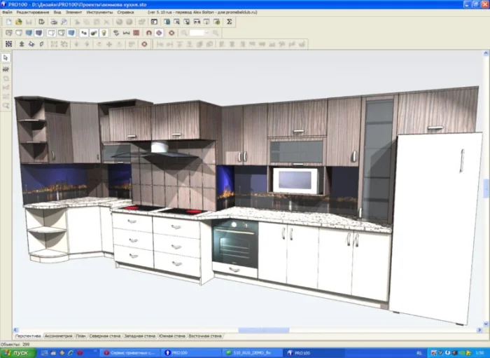 Это уже более серьезный инструмент с огромным арсеналом возможностей. Полноценно работать в нем без подготовки сложно. Поэтому PRO100 чаще используют мебельные компании и профильные дизайнеры для создания сложных, детализированных проектов и даже визуализации отдельных предметов мебели.