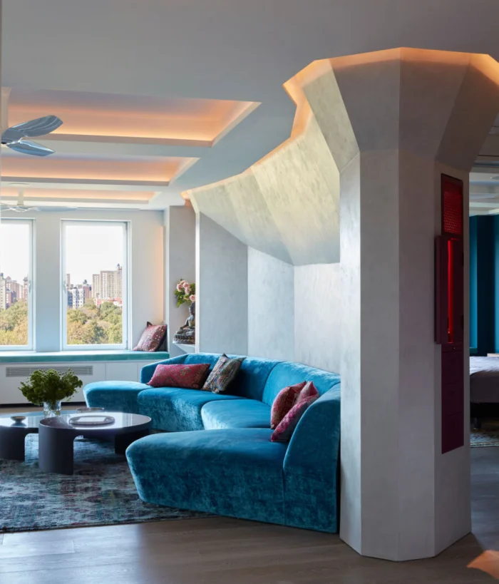 - Архитектурные элементы: уютная ниша, оформленная текстилем, или подиум.