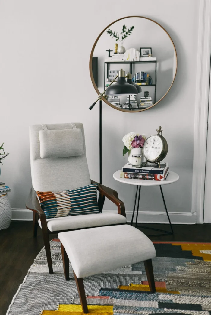 Расстановка мебели — это почти математика. В вытянутой прямоугольной комнате мебель вдоль длинных противоположных стен создаст эффект зеркальности и зрительно расширит пространство. Интересный приём, правда?