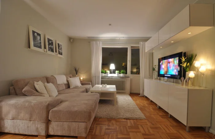 Главный принцип — не перегружать пространство. Диван, кофейный столик, медиазона и система хранения — этого обычно достаточно для комфорта. Согласны?