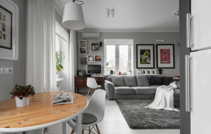 - Делайте ставку на многофункциональную мебель: раскладные диваны, откидные столы, пуфы с хранением.
