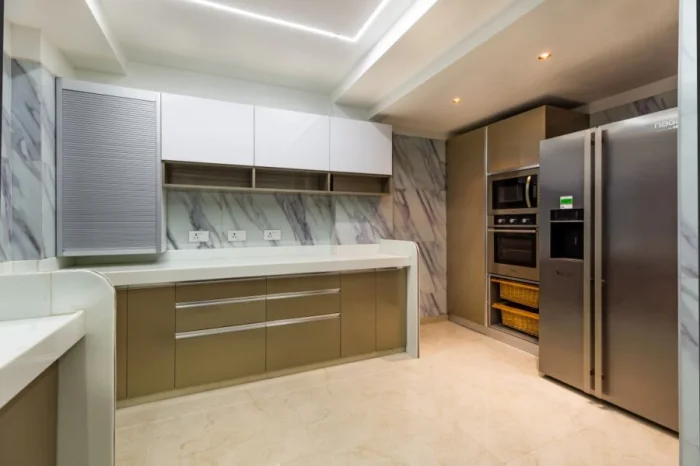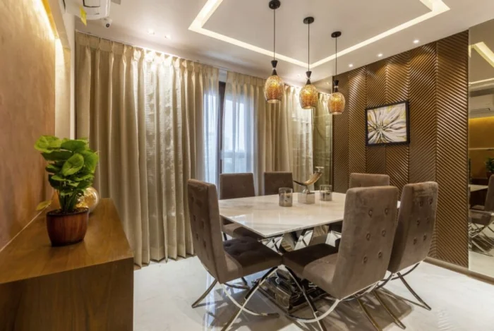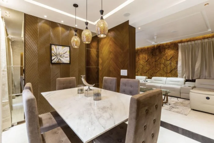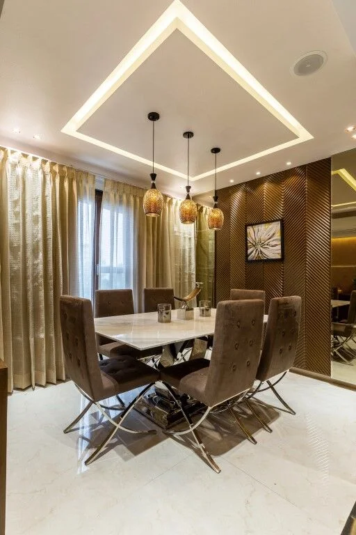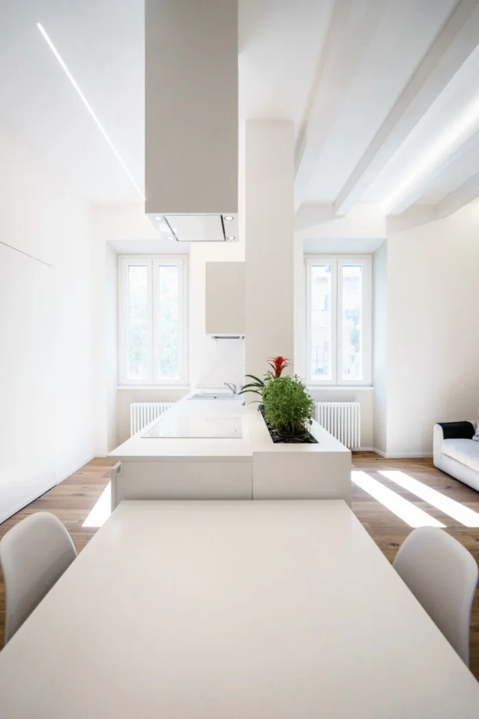 Ваш секретный инструмент — отражающие поверхности. Глянцевый натяжной потолок, зеркальная панель, фасад кухни с глянцевым акрилом — все это работает как оптический иллюзионист, умножая пространство и свет.