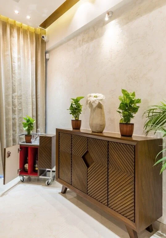 Можно играть и с материалами: комбинировать краску и декоративную штукатурку, обои и панели. Это добавляет интерьеру глубины и объема.