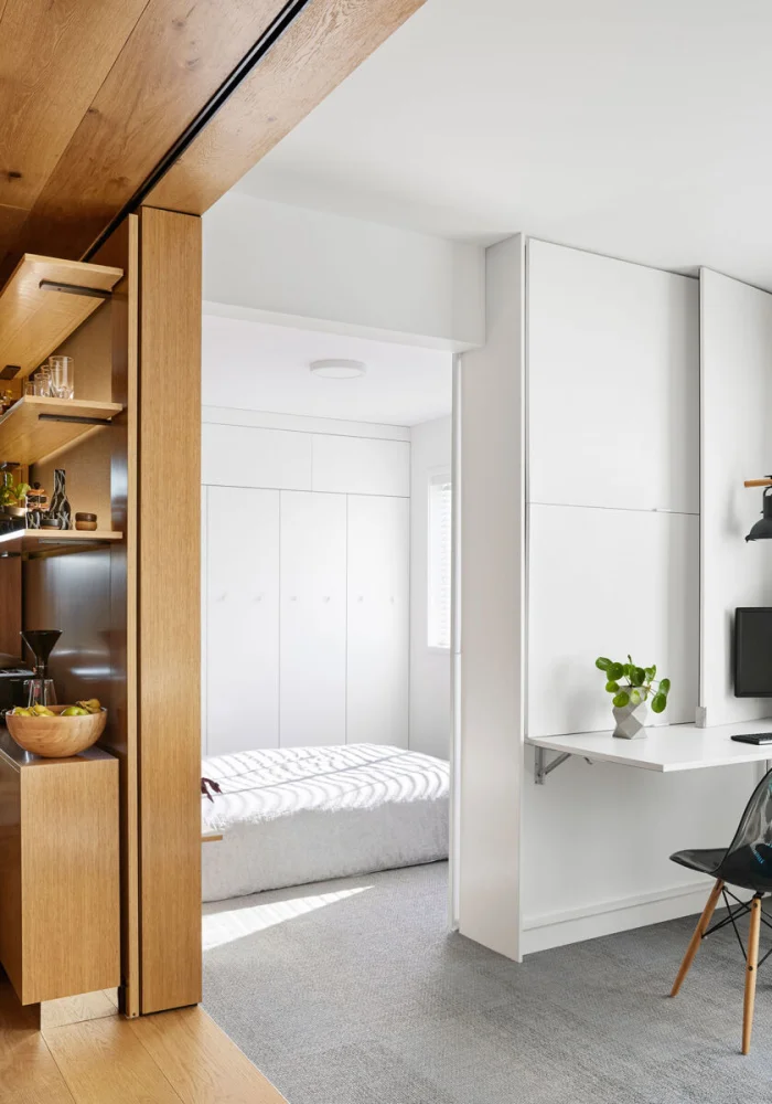 Встроенная мебель — ваш главный союзник. Шкафы от стены до стены, кровати с ящиками, трансформирующиеся столы. Они экономят пространство и создают ощущение порядка.