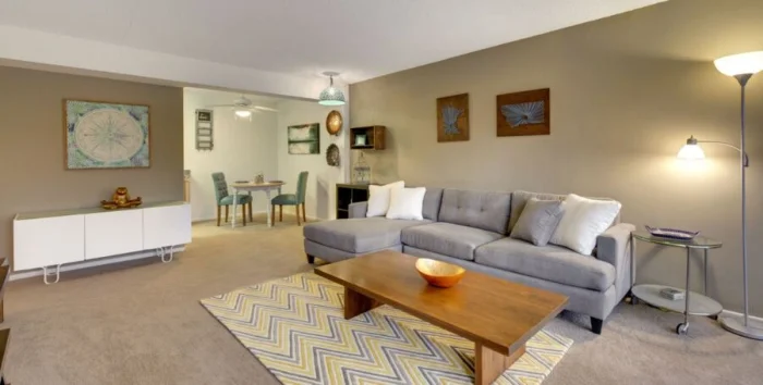 Что касается мебели, то правило работает наоборот, если ее много. Массивный гарнитур лучше выбрать на тон-два темнее стен, чтобы он не «давил». А вот отдельные предметы — диван, кресло, комод — могут быть яркими и стать цветовыми акцентами.