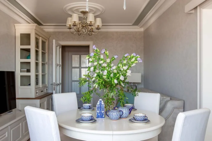 Базовое правило: светлые тона визуально расширяют пространство. Это не значит, что все должно быть белоснежным и стерильным. Пастельные оттенки — ваш лучший друг. Бежевый, светло-серый, молочный, пудровый голубой — эти цвета создают ощущение воздуха и света.