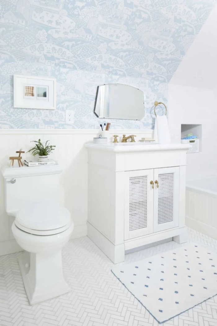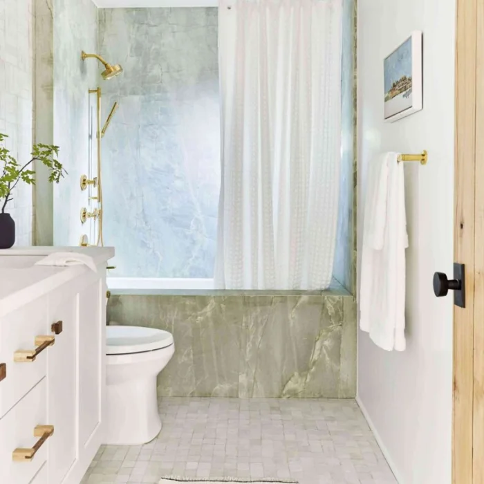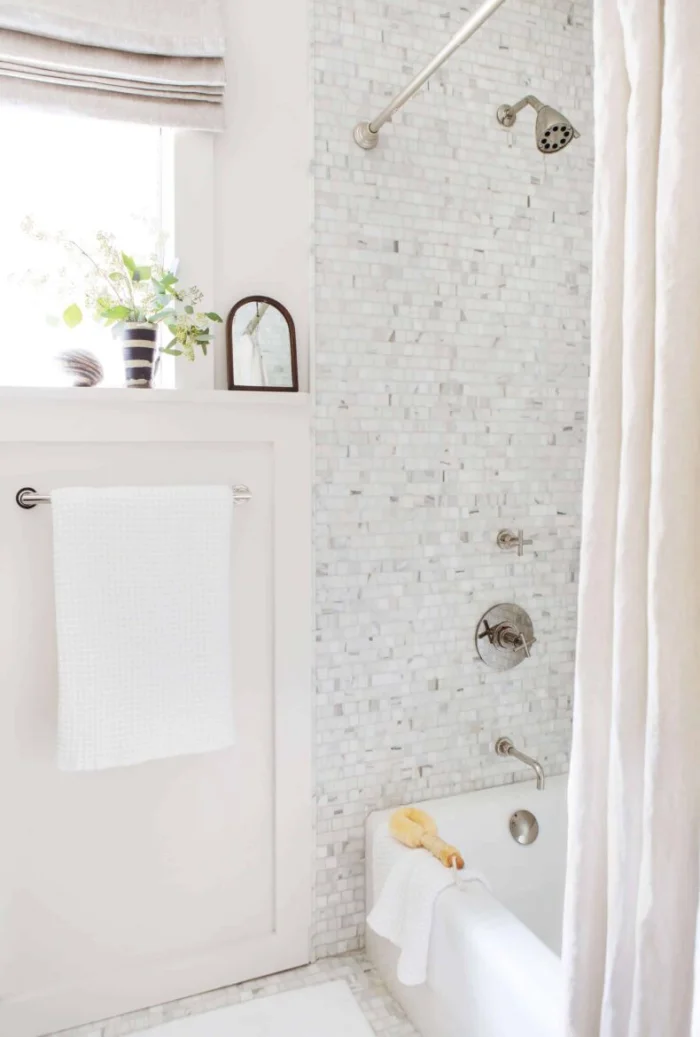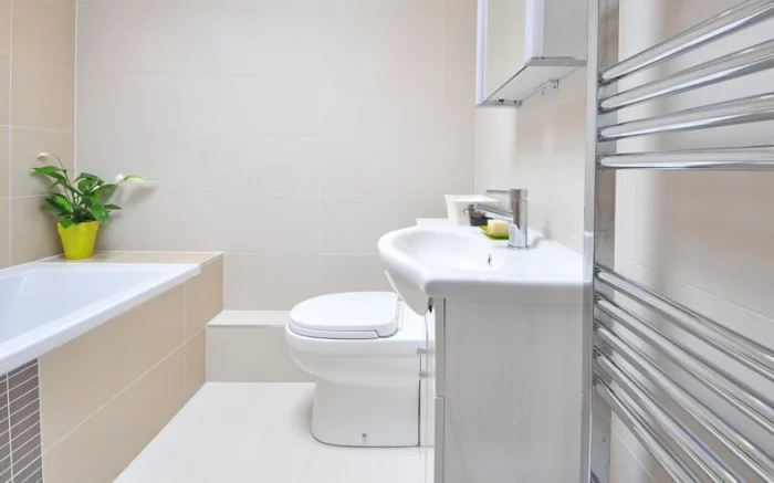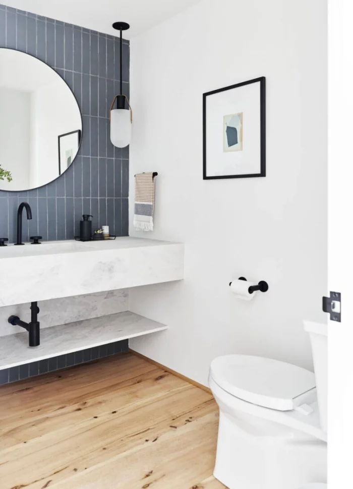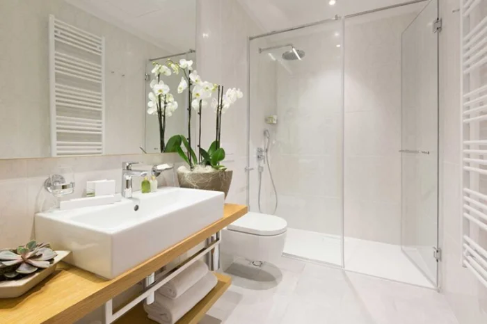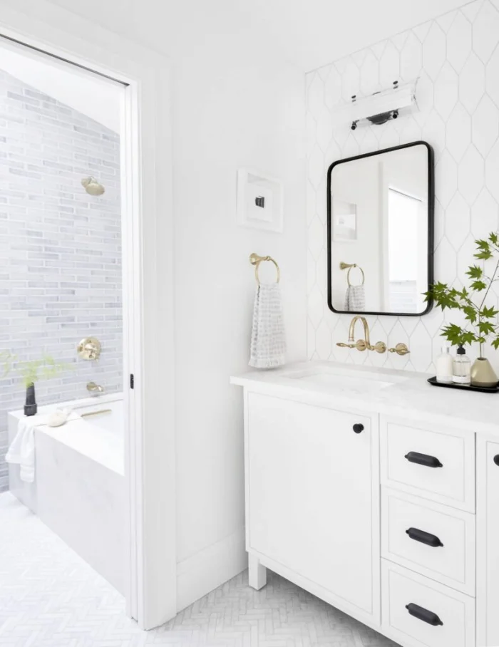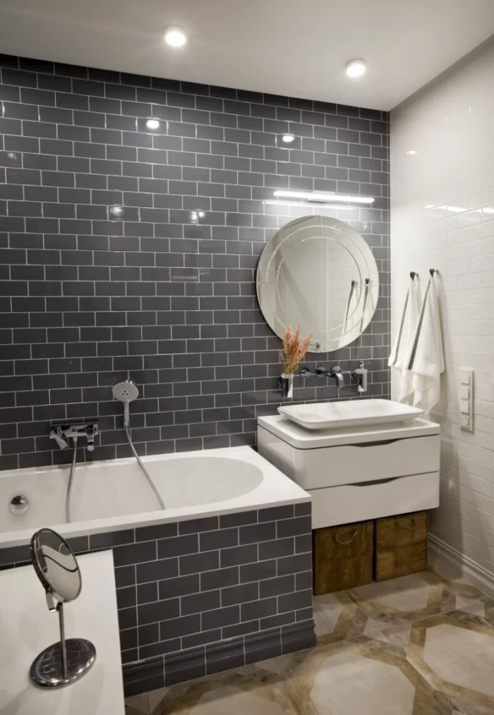 Светлая основа — закон. Но монохромный белый может превратить ванную в стерильный бокс. Разбавьте его! Добавьте один-два акцентных цвета через аксессуары: полотенца, коврик, держатели. Или сделайте одну контрастную стену.