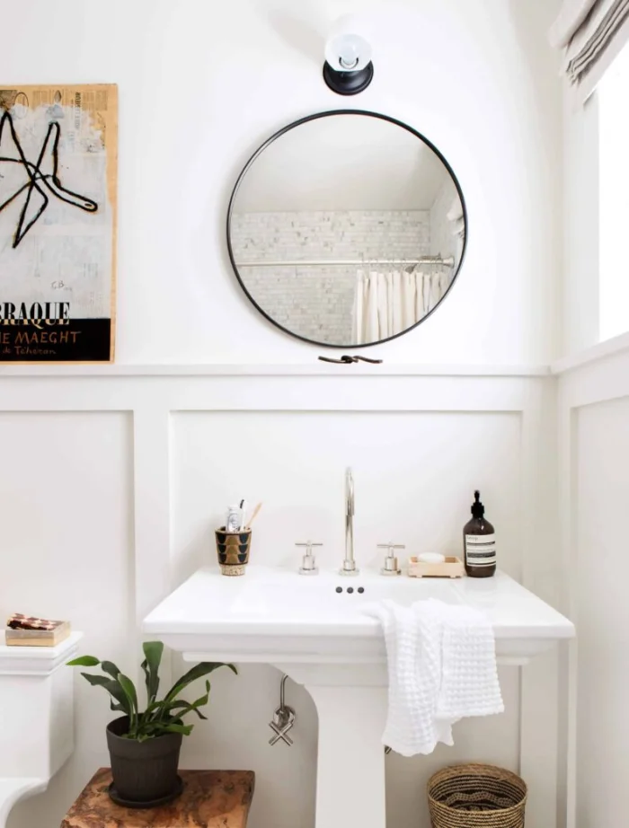 - Обязательно — хороший свет над зеркалом у раковины (по бокам или сверху).