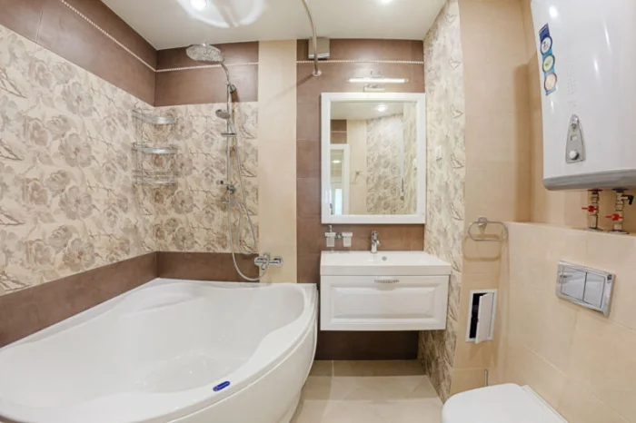 - Что в приоритете — ванна или душ? Будем честны: большинство из нас принимает душ. Полноценная ванна съедает уйму места. Душевая кабина или, что еще лучше, компактный гидробокс (та же кабина, но с расширенным функционалом) — разумная альтернатива. А что насчет унитаза и раковины? Без них, увы, никуда.