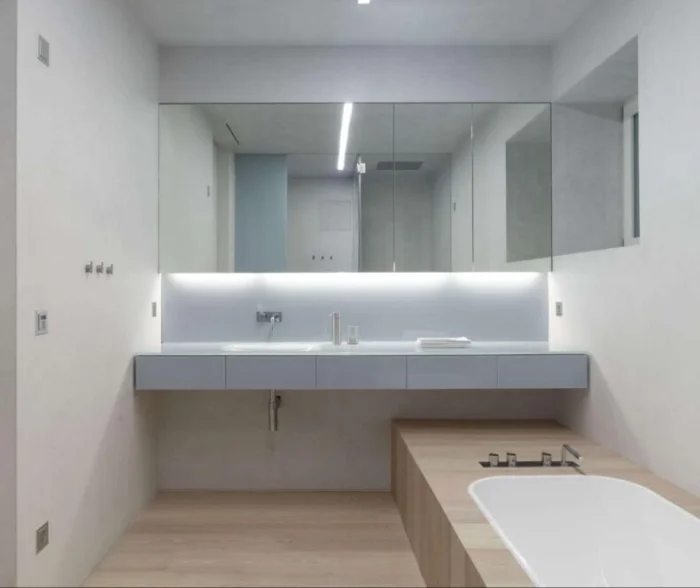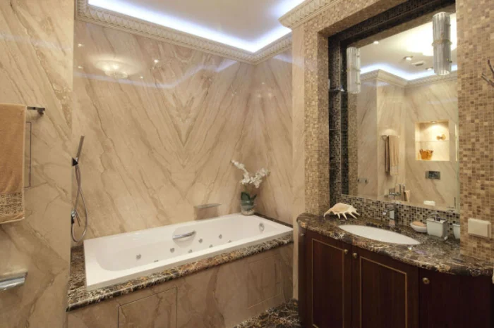 - Подсветка в нишах или за зеркалом создаст уютную атмосферу.