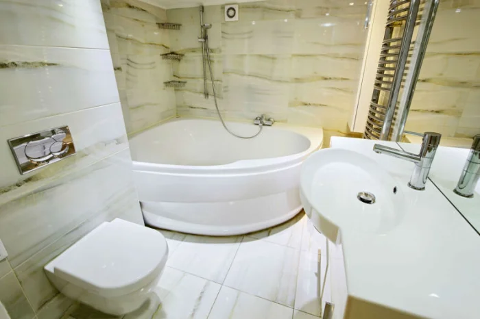 - Смело отказывайтесь от ванны. Задайте себе вопрос: «А я часто ей пользуюсь?» Если ответ «нет», смело выбирайте душ. Вы сэкономите до половины площади!