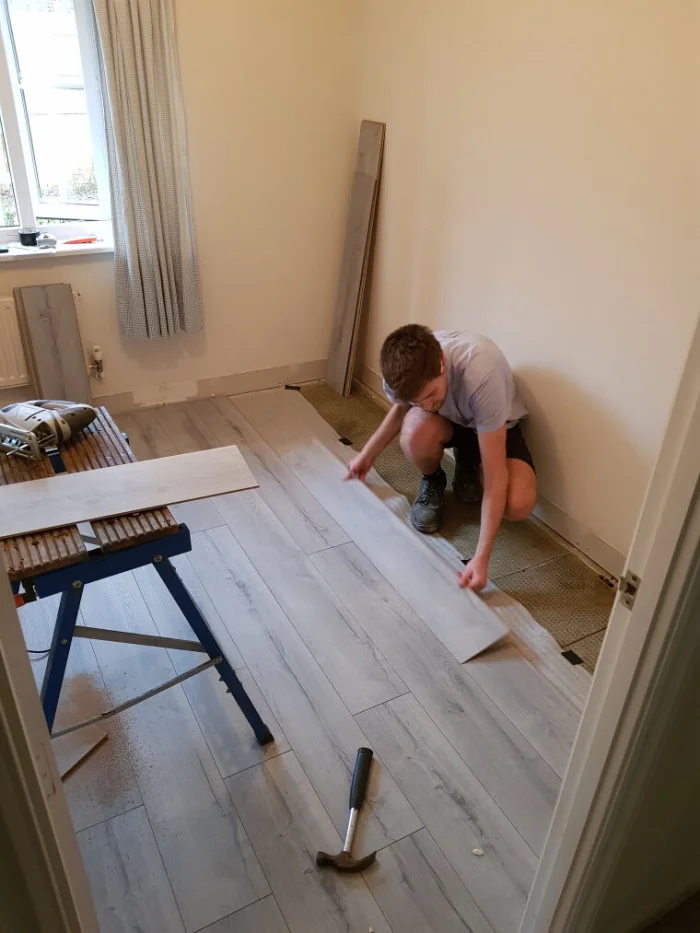 - Подготовка. Выравниваем стены и пол, заделываем трещины. Идеальная геометрия облегчит монтаж мебели.