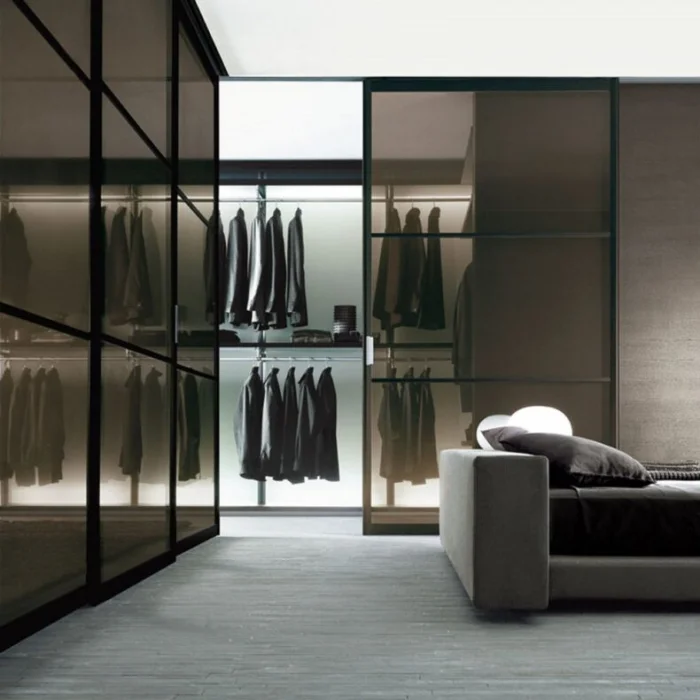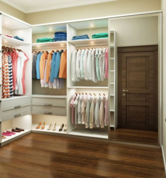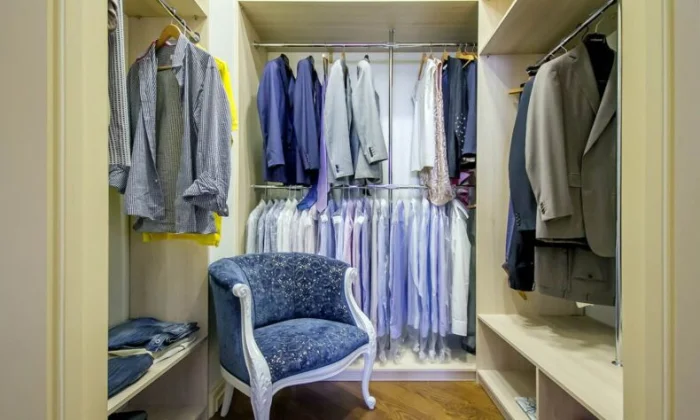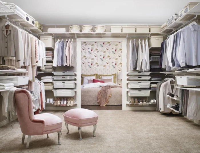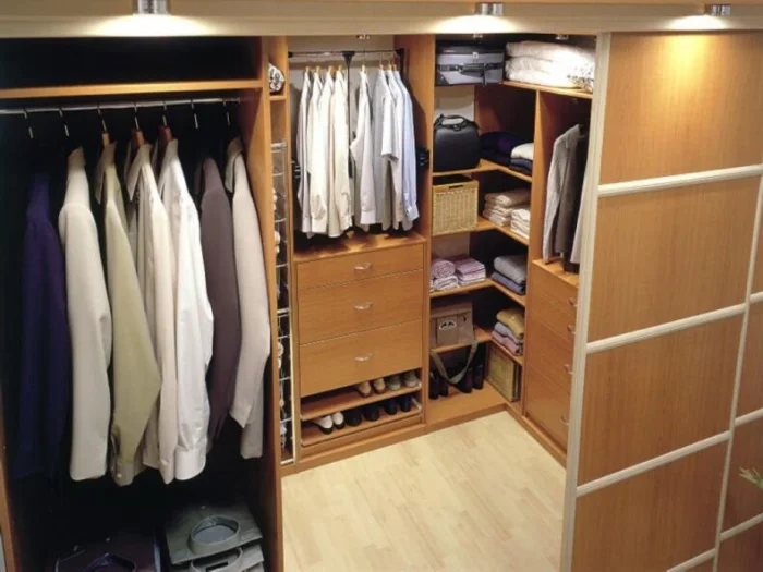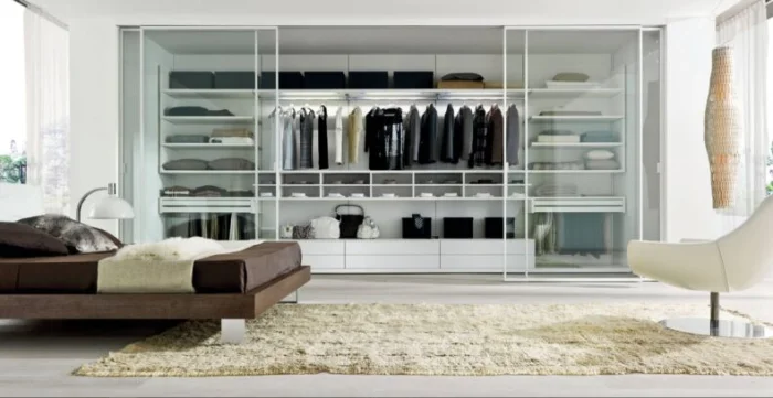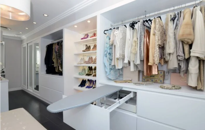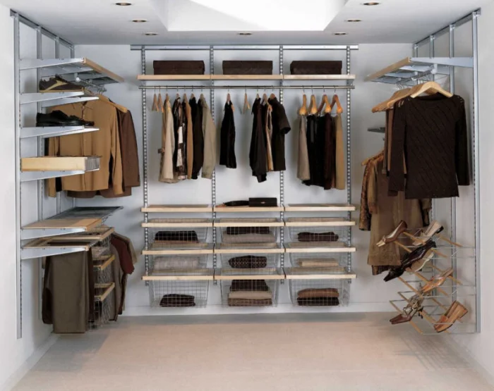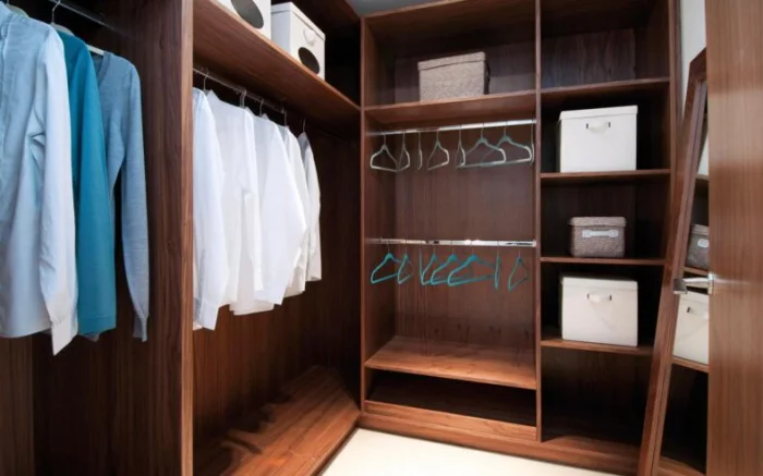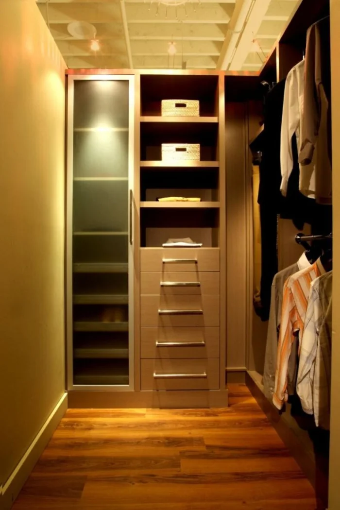 Гардеробная должна быть изолирована. Это защитит вещи от пыли, кухонных запахов и просто позволит поддерживать в ней свой, особый микроклимат. Вариантов несколько: