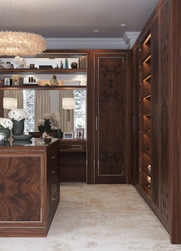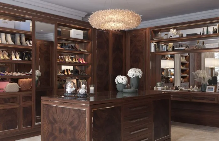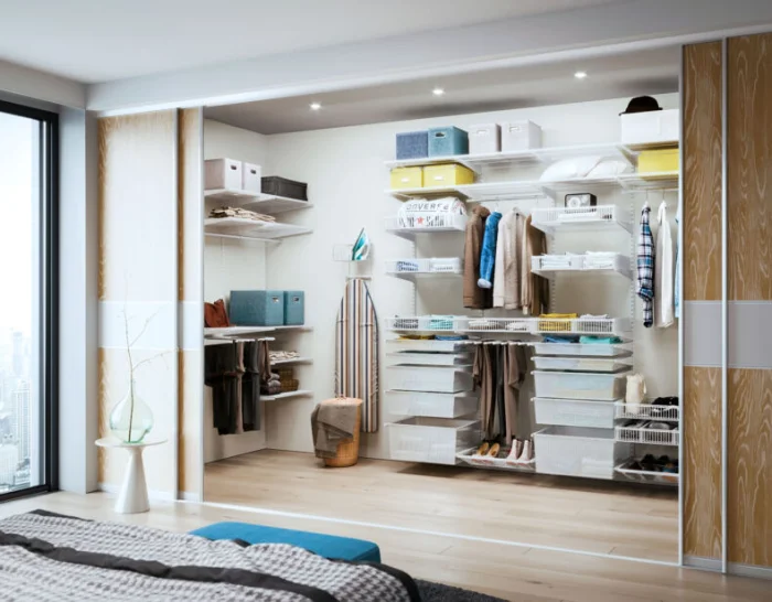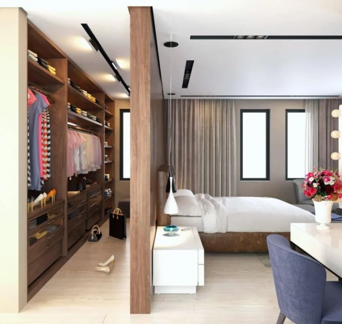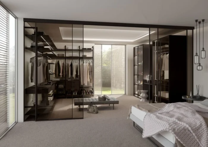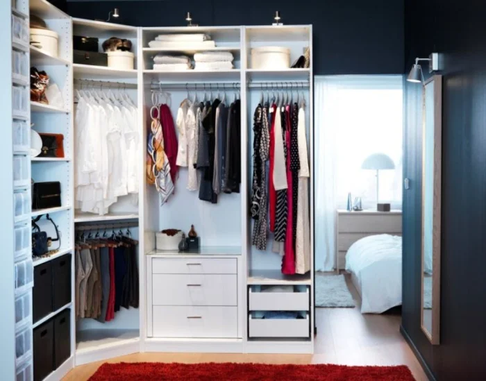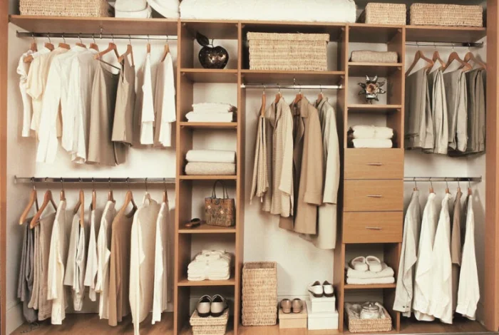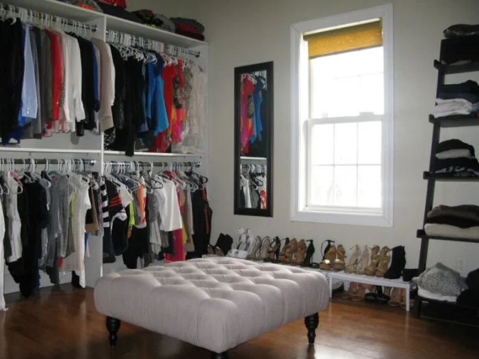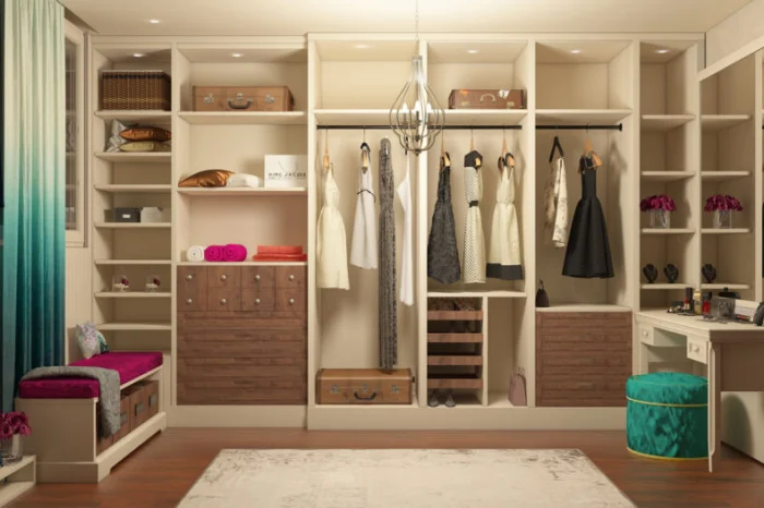 Гардеробная должна быть изолирована. Это защитит вещи от пыли, кухонных запахов и просто позволит поддерживать в ней свой, особый микроклимат. Вариантов несколько: