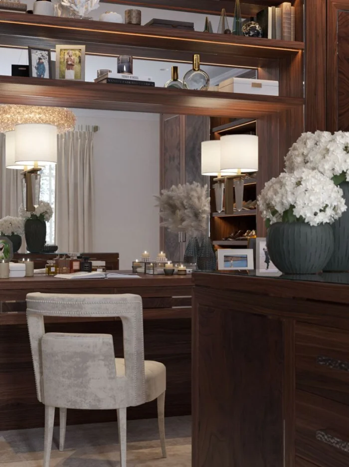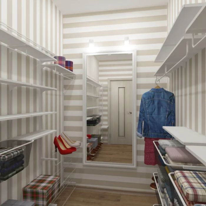 - Персональная примерочная. Можно установить огромное зеркало в полный рост и хорошее освещение. Оценить образ перед выходом становится легко и приятно.