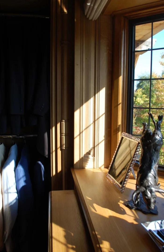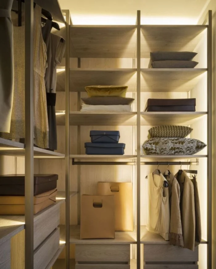 В гардеробной должно быть очень светло. Представьте, что вы пытаетесь найти черную футболку в полутьме. Планировку освещения продумывают на этапе черновой отделки.