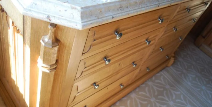 - Фурнитура: штанги, крючки, ручки, а также направляющие для выдвижных ящиков и дверей-купе.