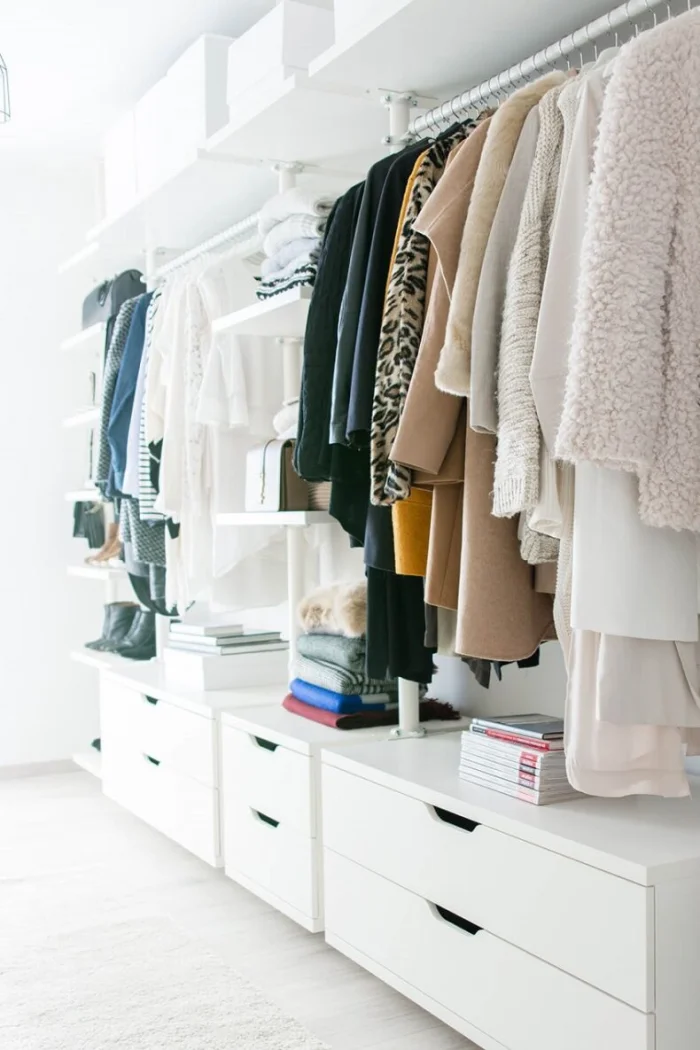 Правила организации очень гибкие. Они зависят от размера комнаты, ее формы и, конечно, от количества и типа ваших вещей. Гардеробная для любителя классических костюмов и для фаната спортивного стиля будут выглядеть по-разному, согласитесь?