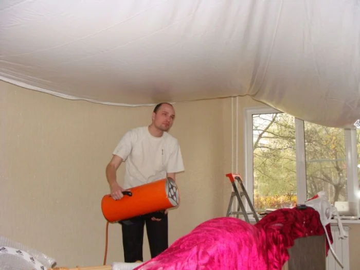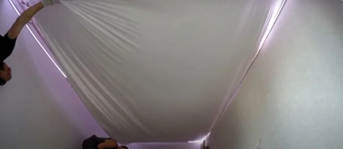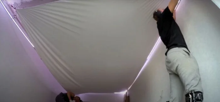 - Если полотно слегка провисло (например, от сквозняка), его подтянут тепловой пушкой — подсветка при этом не страдает.