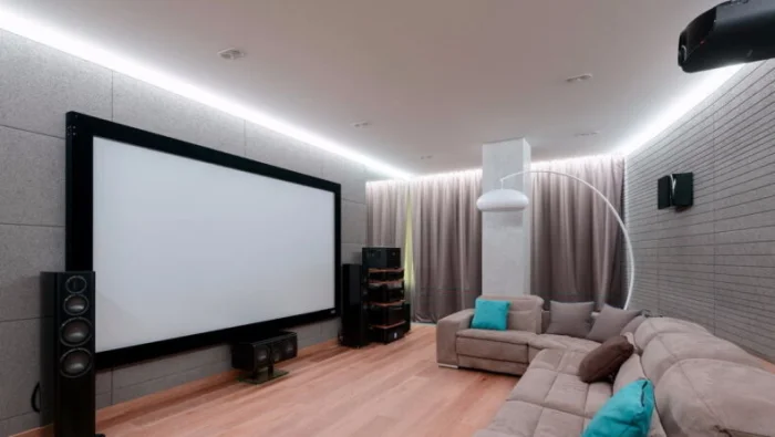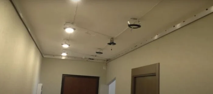Одна из самых впечатляющих технологий — «парящий» потолок. Секрет в особом профиле и скрытой по периметру LED-ленте, которая создает ощущение, что массивное полотно висит в воздухе без опоры.