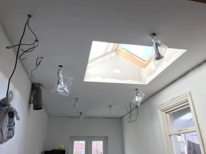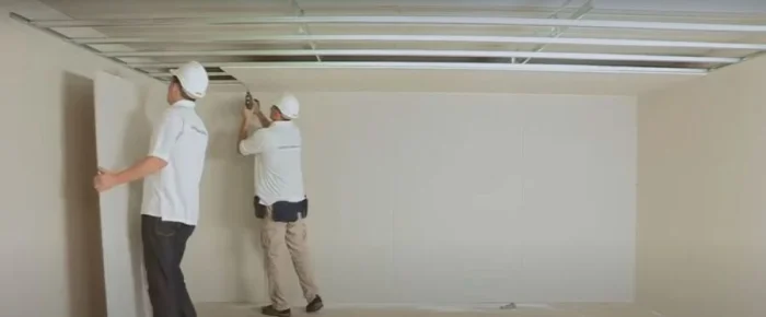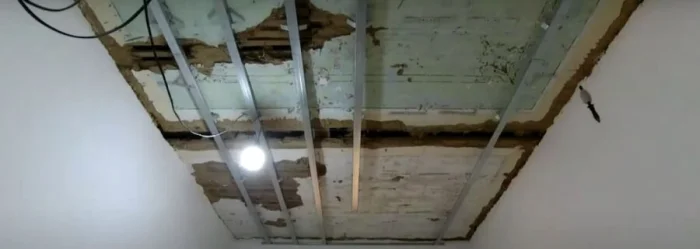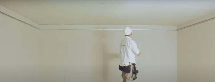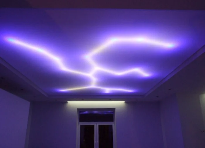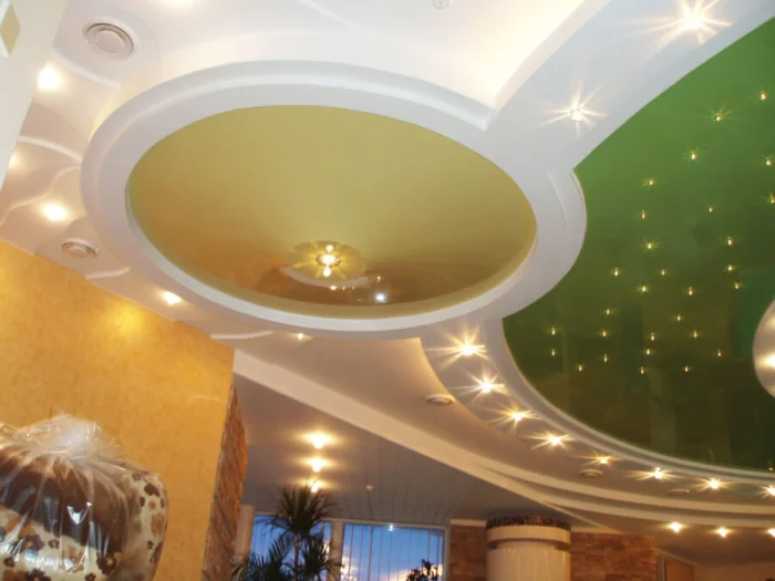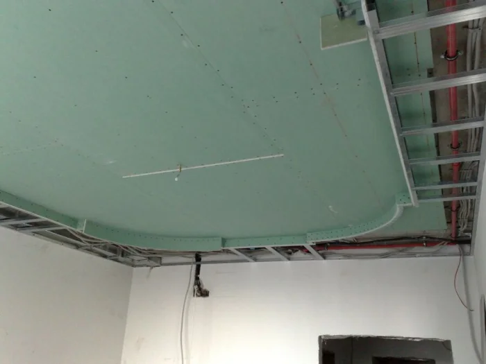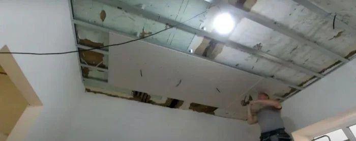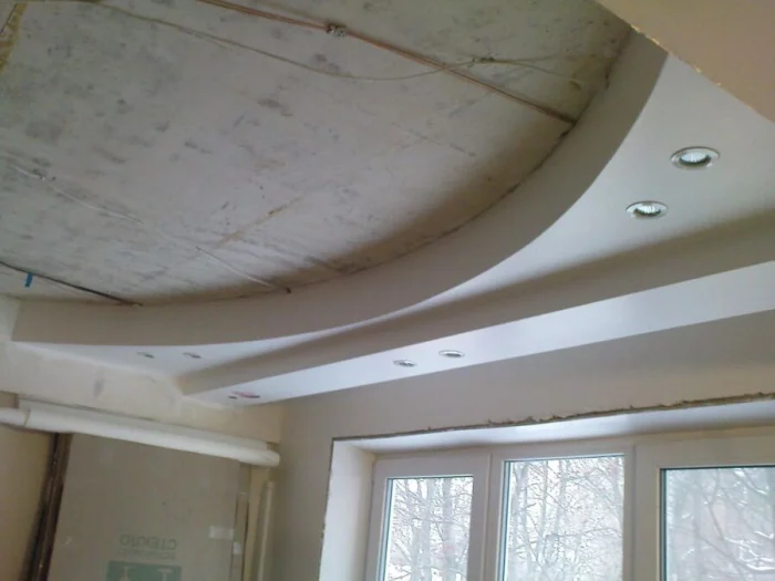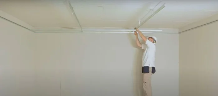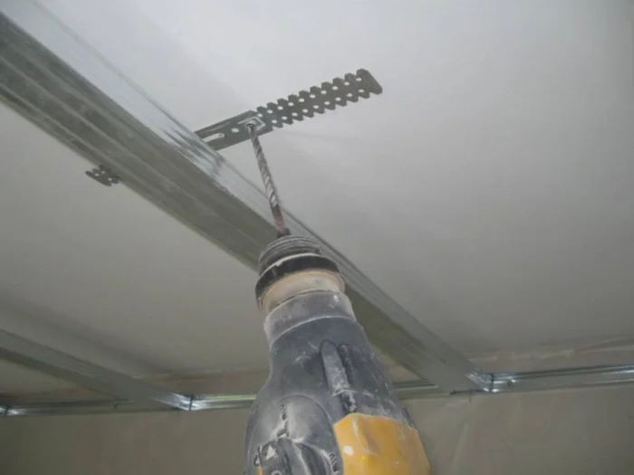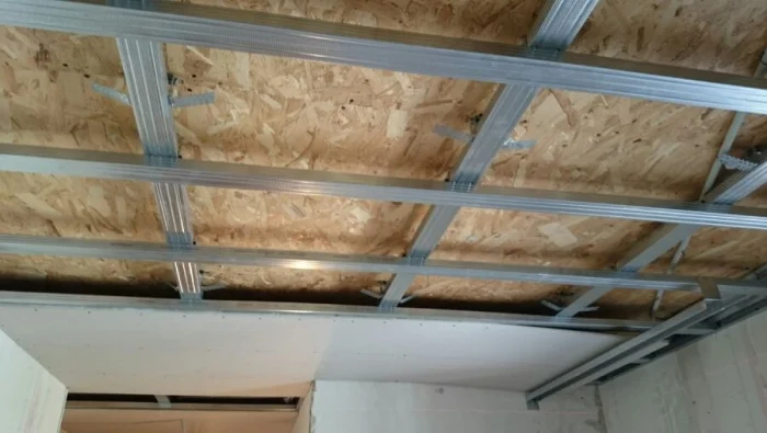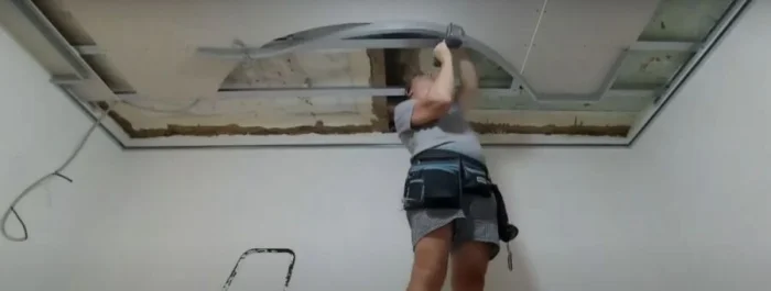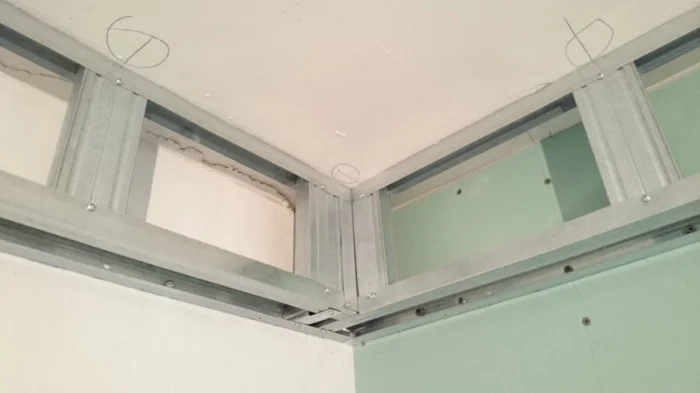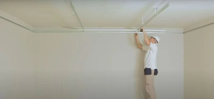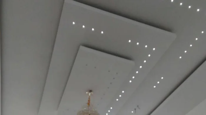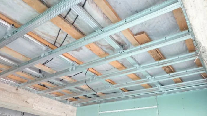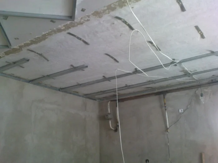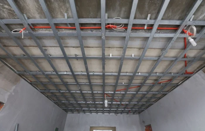 Сначала собирают каркас из металлических профилей, тщательно выверяя уровни. Для многоуровневого потолка профили крепят на разной высоте. Параллельно разводят проводку для будущих светильников.