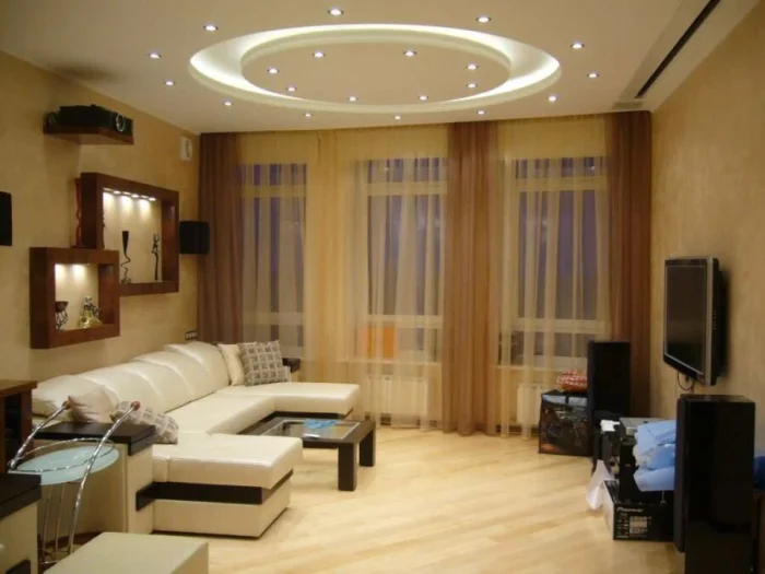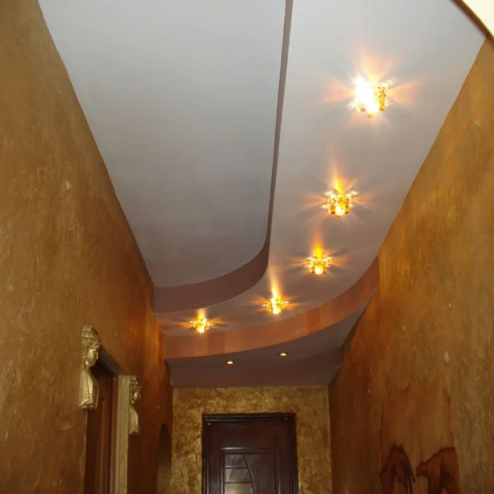- Крадет высоту. Многоуровневая конструкция может «съесть» 10-15 см. Спасет только грамотное освещение, которое визуально поднимет потолок.