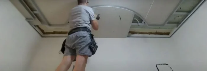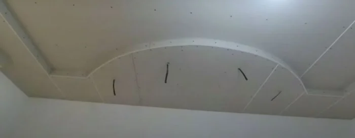 Затем к каркасу крепят листы гипсокартона, предварительно придав им нужную форму. Стыки должны быть идеально подогнаны.