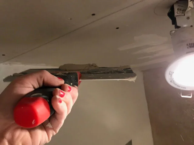 Начинается магия чистовой отделки: швы и места креплений саморезами шпаклюют, проклеивают специальной лентой (серпянкой), снова шпаклюют, шлифуют и грунтуют. Только после этого можно красить или клеить.