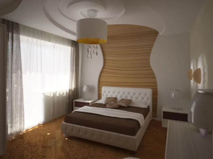 - Плавные линии и пастельные тона дарят умиротворение. То, что нужно для спальни.