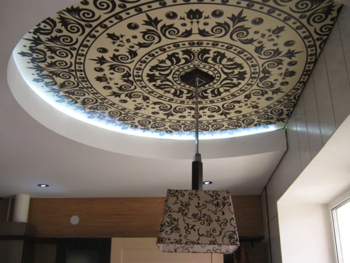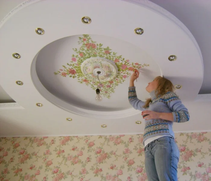 Чем украсить готовый потолок — решать вам. Этот этап самый творческий. Не бойтесь подсмотреть свежие дизайнерские тренды — возможно, среди них найдется именно ваша идея.